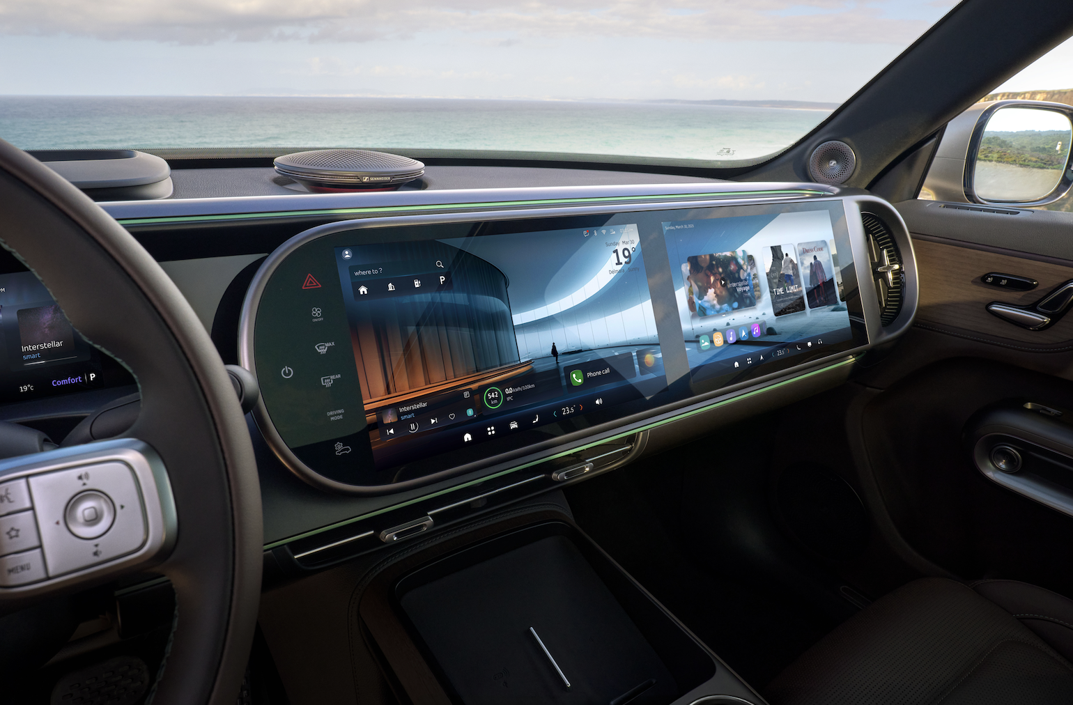 Eigenlijk is het een auto voor tech-lovers. In die zin is het een verlengde van Smart Home, maar dan on the road. Zo heeft de auto een eigen app. Je krijgt één sleutel en kunt de app ook gebruiken als sleutel. Maar bijvoorbeeld ook om – net als thuis – op afstand het klimaat te regelen, de batterijstatus en gegevens te bekijken, en updates te ontvangen. Verder zit er voorin een koelvak en twee 13-inch digitale displays wat de nodige entertainment onderweg of op locatie toelaat, zoals muziek of films voor de passagier. Daarbij, ook leuk voor een kampeertrip: de sfeerverlichting met 256 kleuren.