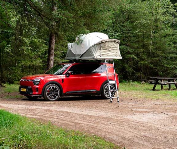 De auto is echt bedoeld voor het avontuurlijke gezin; om er samen op uit te gaan. Dat zie je trouwens ook wel terug in de smart als je naar werk rijd: moderne tech, het geluidsysteem en ultrasnel laden maken zulke ritjes ook best avontuurlijk. Verder ter illustratie: de auto heeft een campingmodus waarmee je een matras in de auto kwijt kan (kingsize, queensize of eenpersoons). In de buitenlucht heb je vanuit daar uitzicht door een enorm panoramadak. In de ochtend kun je bijvoorbeeld een kopje koffie zetten met behulp van het 230V-stopcontact. Die komt ook van pas als mobiele powerbank voor telefoons of andere campinggear. Als je nog avontuurlijkere plannen hebt, dan is een daktent van Thule een mooie optie om eropuit te gaan; zo houd je genoeg ruimte over in de auto. Bovendien ga je als elektrische SUV stil en schoon de natuur in, ook met de offroad rijmodi en vierwielaandrijving. Ook niet onbelangrijk bij een rustige kampeertrip.